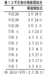 ※ 今年のスギ花粉の飛散開始日は、現時点で2月28日前後と予想され、例年(2月25日)より3日遅くなっています。