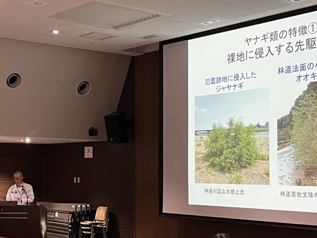 本年度の研究成果発表会は「ヤナギの生態とその活用」をテーマに、県内におけるヤナギ類の分布・分類に関する基礎的な知見をはじめ、次世代バイオマス作物としての活用に向けた最新の試験成果など、当所の取り組みを幅広く紹介しました。